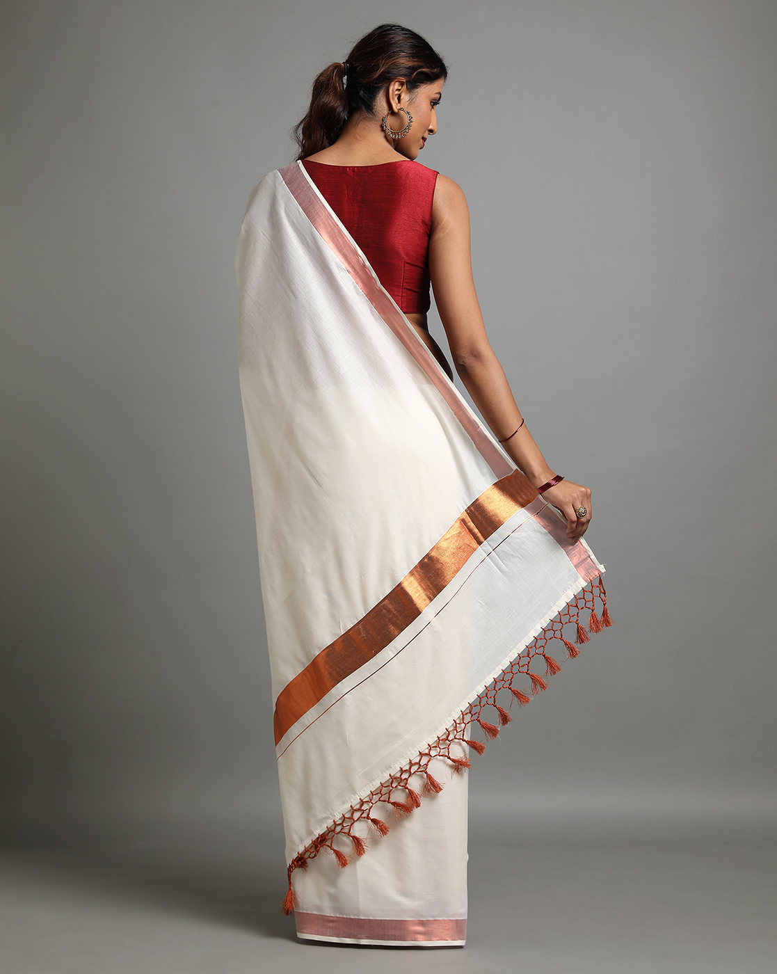 Handloom Cotton Saree with Tussel Pallu – Suju Sarees